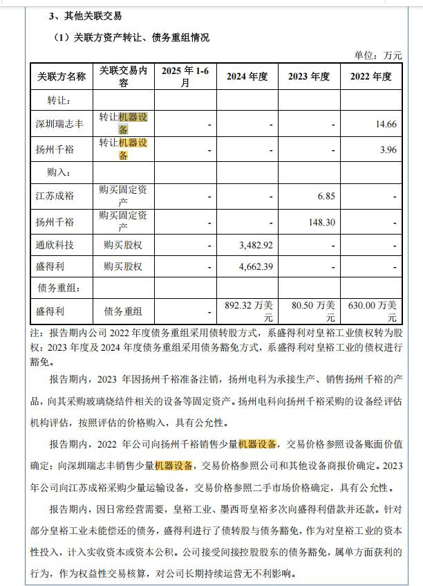 就此,监管部门要求公司说明盛得利对皇裕工业进行债转股与债务豁免的金额及相关债务形成与偿还等情况,债转股定价依据及公允性,是否存在利益输送;以及说明报告期内经常性关联交易的必要性。