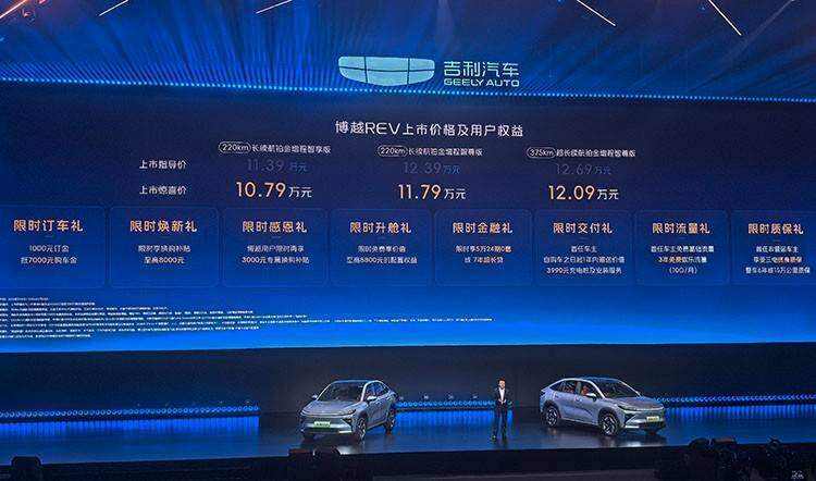 吉利博越 十周年之际,家族又迎来新成员—博越REV,新车此次推出3款车型,售价11.39-12.69万元,上市惊喜价10.79-12.09万元。吉利博越REV定位紧凑SUV,采用1.5L增程动力,拥有最大375km的CLTC纯电续航以及1525km的综合续航。